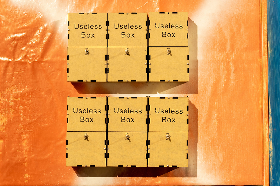 The Stand-in Project—Muda Muda Muda!, useless box, mechanical counter, discarded works by the artist, performance documentation, 2 min 10 sec, 2022
