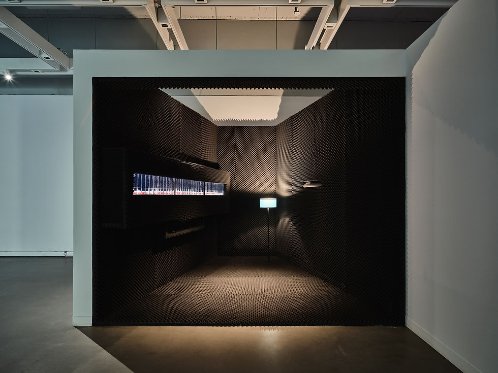 Turn the Volume Down, acoustic foam, three-channel video, sound installation, found objects, 20 min, 3 min 9 sec, dimensions variable, 2024 (Photo by Studio Millspace)